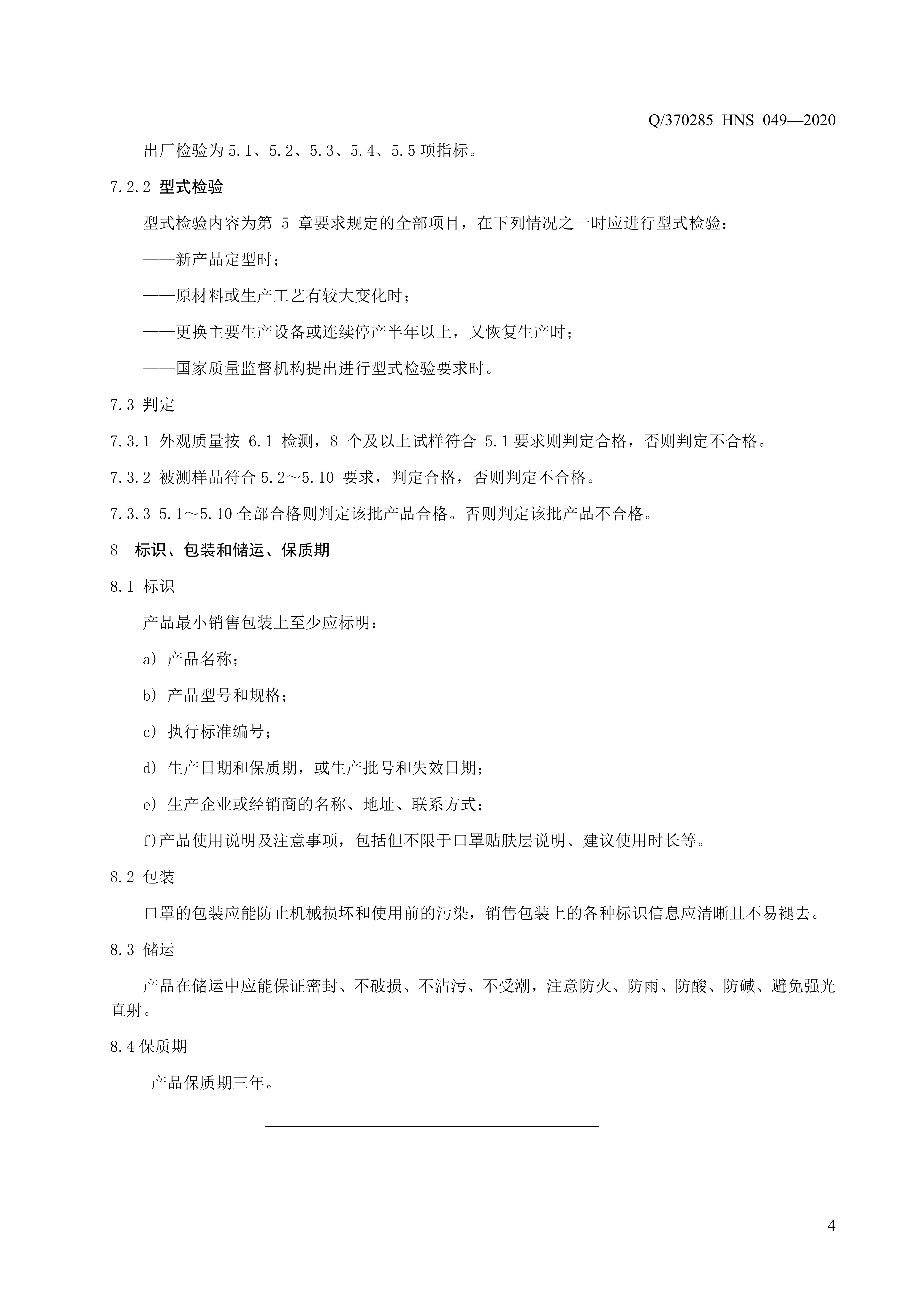 青島海諾生物工程有限公司企業(yè)標(biāo)準(zhǔn) — 一次性板藍(lán)根口罩